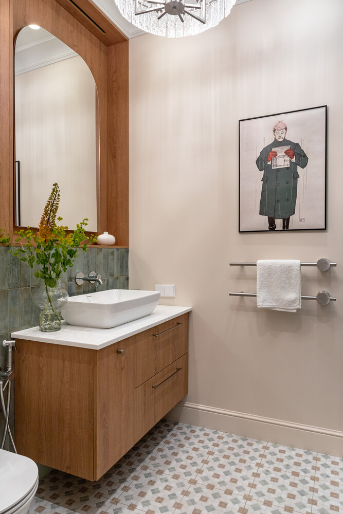 Фотография: Ванная в стиле Современный, Малогабаритная квартира, Квартира, Проект дня, Москва, Монолитный дом, 2 комнаты, до 40 метров, современный с элементами неоклассики – фото на INMYROOM