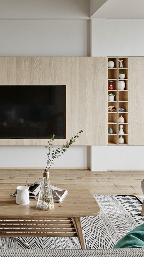 Безмятежно стильный интерьер в белых и деревянных тонахДизайн