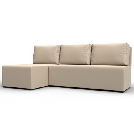 Диван требует минимум 12 м² свободного пространства. Габариты углового элемента позволяют эффективно использовать угол комнаты, не загромождая центр. Подойдет для семейных пар, одиноких жителей мегаполиса или владельцев студий, которые ценят функциональность. Экокожа бежевого цвета — практичное решение для повседневного использования. Материал легко чистится влажной салфеткой, устойчив к царапинам домашних животных и не впитывает запахи.Технические характеристики: