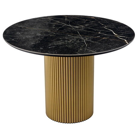 Обеденный стол Aura: черная керамическая столешница на золотой опоре для современной гостиной
